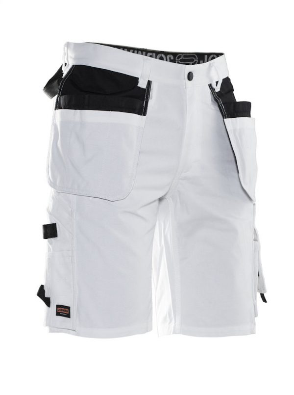 Technische korte werkbroek speciaal ontwikkeld voor schilders. De broek heeft een uitstekende pasvorm. De nauw geweven katoenen twill zorgt ervoor dat het pigment van de verf zo min mogelijk wordt opgenomen door de broek. De broek is voorzien van ruime holsterzakken gevoerd met waterafstotend FA™ polyamide. Verder is de broek uitgerust met ruime steekzakken aan de voor- en achterzijde, zak op het been met extra compartiment, rits, ruimte voor een telefoon en ID-kaart en handige zak voor het opbergen van een mes, duimstok en andere verfbenodigdheden. Voorzien van lus om bijvoorbeeld een doek in op te bergen. Wasbaar op 85°C.